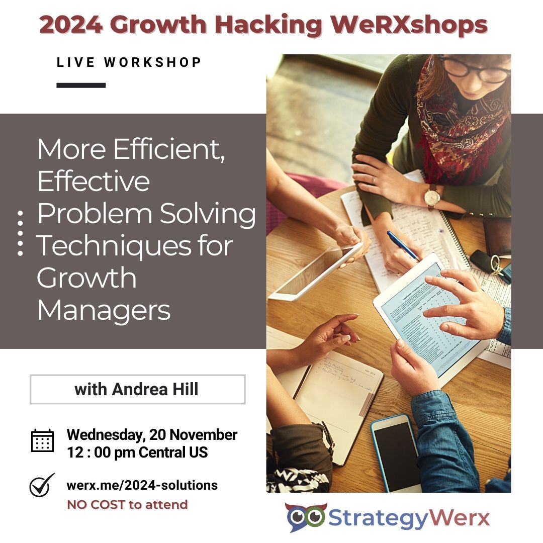 Feeling like problems are multiplying faster than your solutions? Join us for "More Efficient, Effective Problem-Solving for Growth Managers," a workshop designed to transform you from fire-fighter to fearless innovator. Learn how to ditch the reactive mindset and embrace proactive strategies that fuel growth, boost efficiency, and propel your business forward.